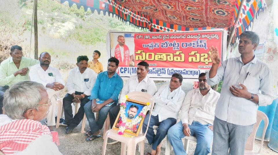 బుధవారం ఆత్మకూరు మండలం, గూడెప్పాడు గ్రామంలో కామ్రేడ్ బొట్ల రాకేష్ చిత్రపటానికి పూలతో నివాళులు అర్పించి “సంతాప సభ” మాస్ లైన్ వరంగల్ డివిజన్ సహాయ కార్యదర్శి అర్షం అశోక్ అధ్యక్షతన నిర్వహించడం జరిగింది.