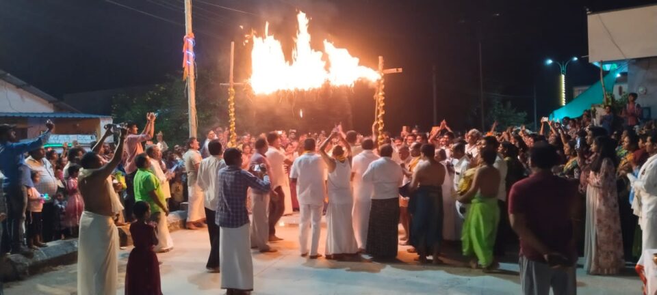 (జై భారత్ వాయిస్ ఆత్మకూరు న్యూస్)ఆత్మకూరు మండల కేంద్రంలోని పంచకూట శివాలయంలో కార్తీక పౌర్ణమి సందర్భంగా భక్తులు ప్రత్యేక పూజలు నిర్వహించారు ఉదయం నుంచి రాత్రి వరకు ఆత్మకూరు మండల కేంద్రంతో పాటు కామారం తిరుమలగిరి తదితర గ్రామాల ప్రజలు పంచ కూట శివాలయానికి తరలివచ్చి మహా శివునికి ప్రత్యేక పూజలు నిర్వహించారు సాయంత్రం జరిగిన కార్యక్రమంలో ఆకాశదీపం ,జ్వాలాతోరణం ఉత్సవాలను నిర్వహించారు అలాగే శివపార్వతులకు ప్రత్యేక పూజలు నిర్వహించే జ్వాలాతోరణం సందర్భంగా భక్తులకు సందర్శించేందుకు అనువుగా వీలు కల్పించారు. జ్వాలా తోరణం కార్యక్రమం కన్నుల పండుగగా జరిగింది ఈ కార్యక్రమంలో ఆత్మకూరు ఎండిఓ శ్రీనివాస్ రెడ్డి ఆత్మకూరు సిఐ సంతోష్ కుమార్ మాజీ సర్పంచ్ పలకల మంజుల మాజీ జెడ్పిటిసి సత్యనారాయణ మాజీ ఉపసర్పంచి వంగాల స్వాతి భగవాన్ రెడ్డి, పలు గ్రామాల భక్తులు ఉత్సవంలో పాల్గొన్నారు