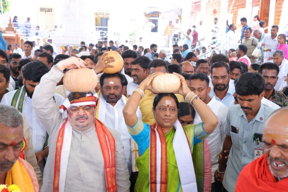 రాష్ట్రంలో అన్ని ఆలయాలను రాష్ట్ర ప్రభుత్వం అభివృద్ధి చేస్తుందని రాష్ట్ర పర్యావరణ అటవీ దేవాదాయ శాఖ మంత్రి కొండా సురేఖ అన్నారు.గురువారం హనుమకొండ జిల్లా భీమదేవరపల్లి మండలం కొత్తకొండ లోని శ్రీ వీరభద్ర స్వామి బ్రహ్మోత్సవాలలో భాగంగా రాష్ట్ర పర్యావరణ అటవీ దేవాదాయ శాఖ మంత్రి కొండా సురేఖ, రాష్ట్ర రవాణా బీసీ సంక్షేమ శాఖ మంత్రి పొన్నం ప్రభాకర్ శ్రీ భద్రకాళి సమేత వీరభద్ర స్వామి వార్లను దర్శించుకున్నారు. ఆలయం చుట్టూ ప్రదక్షణలు చేశారు. అనంతరం ఆలయంలో శ్రీ భద్రకాళి సమేత వీరభద్ర స్వామిని మంత్రులు దర్శించి ప్రత్యేక పూజలు చేశారు. ఆలయ పండితులు ఆశీర్వచనం అందించారు. అంతకుముందు త్రిశూలం కూడలిని మంత్రులు ప్రారంభించారు. ఆలయ ప్రాంగణంలో మీడియాతో రాష్ట్ర పర్యావరణ అటవీ దేవాదాయ శాఖ మంత్రి కొండా సురేఖ మాట్లాడుతూ కొత్తకొండ శ్రీ భద్రకాళి సమేత వీరభద్ర స్వామి వార్లను దర్శించుకోవడం చాలా సంతోషకరంగా ఉందన్నారు. ఆలయంలో స్వామివారు భీకర రూపం కాకుండా ముఖంపై కోర మీసాలతో దర్శనమిస్తుంటారు కాబట్టి కోర మీసాల వీరభద్ర స్వామిగా భక్తులు కొలుస్తుంటారని పేర్కొన్నారు. పురాణాల ప్రకారం తపస్సు చేసి స్వయంభుగా శ్రీ వీరభద్ర స్వామి వెలిశారని భక్తులు నమ్ముతారని అన్నారు. కాకతీయుల కాలం నాటి వేంగి చాళుక్యులు ఈఆలయాన్ని నిర్మించారని, తదనంతరం కాకతీయ రాజైన బేతరాజు -1 ఆలయాన్ని పునరుద్ధరించారని చరిత్ర చెబుతుందన్నారు.విగ్రహ ప్రతిష్ట 1600 సంవత్సరం ప్రాంతంలో కొందరు కుమ్మరులు కొండపైకి వంట చెరుకు కోసం వెళ్ళినప్పుడు స్వామివారు స్వప్నంలో కనిపించారని అన్నారు. కొండపై ఉన్న స్వామివారి విగ్రహాన్ని కిందకు తీసుకువచ్చి ఆలయంలో ప్రతిష్టించారని కథనం ప్రాచుర్యంలో ఉందన్నారు. ప్రతి సంవత్సరం ఆలయంలో బ్రహ్మోత్సవాలను ఘనంగా నిర్వహిస్తుంటారని పేర్కొన్నారు. ప్రతి జనవరి నెలలో సంక్రాంతి పర్వదినం సందర్భంగా అత్యంత వైభవంగా స్వామి వారి బ్రహ్మోత్సవాలు జరుగుతుంటాయని పేర్కొన్నారు. లక్షలాదిమంది భక్తులు శ్రీ భద్రకాళి సమేత వీరభద్ర స్వామిని దర్శించుకుంటారని తెలిపారు. స్వామి వారి కళ్యాణం, కుంకుమార్చన, కోడేలు కట్టడం, అగ్నిగుండం, బండ్లు తిరిగే కార్యక్రమం జాతరలో ప్రత్యేక ఆకర్షణగా నిలుస్తుంటాయని అన్నారు. సంతానం లేని వారు కోరమీసం స్వామివారికి సమర్పించుకుంటే సంతానం కలుగుతుందనే నమ్మకం భక్తుల్లో ఉందన్నారు. భక్తులు స్వామి వారికి విశేష పూజలు నిర్వహిస్తారని అన్నారు. స్వామి వారిని దర్శించుకునే భక్తుల సౌకర్యార్థం వసతి సదుపాయాలను మంత్రి పొన్నం ప్రభాకర్ ప్రత్యేక శ్రద్ధ తీసుకుంటున్నారని అన్నారు. భక్తులకు ఎక్కడ కూడా ఇబ్బందులు లేకుండా ఏర్పాట్లు చేశారని తెలిపారు. భక్తులకు సౌకర్యాలు క