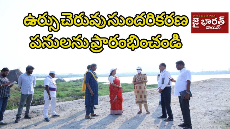 గ్రేటర్ వరంగల్ నగరంలోని ఉర్సు చెరువు సుందరికరణ పనులను వెంటనే ప్రారంభించాలని నగర మేయర్ గుండు సుధారాణి అధికారులను ఆదేశించారు. శుక్రవారం వరంగల్ పరిధి ఉర్సు చెరువు ప్రాంతం లో కమిషనర్ చాహత్ బాజ్ పాయ్ తో కలిసి క్షేత్ర స్థాయిలో పరిశీలించారు చెరువులో చేయాల్సిన ఏర్పాట్ల పై అధికారులకు తగు సూచనలు చేశారు.ఈ సందర్భం గా మేయర్ మాట్లాడుతూ ఉర్సు చెరువు సుందరికరణ అభివృద్ధి చేయడానికి రెండు కోట్లు రూపాయలు మంజూరు అయినందున అట్టి నిధులతో సుందరీకరించడం జరుగుతుందని ఇందుకోసం టెండర్ ప్రక్రియ పూర్తి అయినందున అందుకు అనుగుణంగా డిజైన్ రూపొందించి, ఈ ప్రాంతం లో రేయిలింగ్, గ్రీనరీ ఏర్పాటుతో పాటు సమగ్ర సుందరికరణ చేయాలని మేయర్ అధికారులకు సూచించారు.ఈ కార్యక్రమం లో సి ఎం హెచ్ ఓ రాజారెడ్డి, ఈ ఈ సంతోష్ బాబు, సానిటరీ సూపర్ వైజర్ గోల్కొండ శ్రీను, ఏ ఈ సౌజన్య తదితరులు పాల్గొన్నారు.
