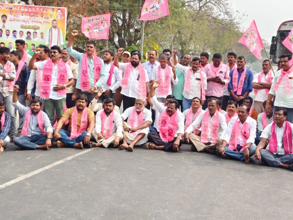 తెలంగాణ మాజీ ముఖ్యమంత్రి, కేసీఆర్ కి తెలంగాణ రాష్ట్ర ప్రభుత్వం రాజకీయ కక్షతో సిట్ నోటీసులు జారీ చేయడాన్ని ఖండిస్తూ, నేడు గీసుగొండ మండలంలోని కొనాయమాకుల గ్రామంలో వరంగల్ నర్సంపేట రహదారిపై గీసుగొండ మండల పార్టీ ఆధ్వర్యంలో నల్ల బ్యాడ్జిలతో నిరసన ధర్నా కార్యక్రమనన్ని నిర్వహించారు. ఈ సందర్భంగా మండల నాయకులు మాట్లాడుతూకేసీఆర్ పై అక్రమ కేసులు, సిట్ నోటీసులతో కక్షసాధింపు చర్యలకు పాల్పడుతోందని తీవ్రంగా మండిపడ్డారు.ప్రజా సమస్యల పరిష్కారంలో విఫలమైన కాంగ్రెస్ ప్రభుత్వం వైఫల్యాలను కప్పి పుచ్చుకునేందుకు తెలంగాణ మొదటి ముఖ్యమంత్రి,బీ.ఆర్.ఎస్ పార్టీ అధినేత కెసిఆర్ గారికి సిట్ నోటీసులు ఇవ్వడం మరియు బీ.ఆర్.ఎస్ పార్టీ నాయకుల పై అక్రమ కేసులు పెట్టి కక్ష్యసాధింపు చర్యలకు పాల్పడుతుందన్నారు…ఈ నిరసన కార్యక్రమంలో నాయకులు మాజీ జెడ్పిటిసి పోలీసు ధర్మారావు, శ్రీకాంత్ . ప్రకాష్ బిఆర్ఎస్ నాయకులు, కార్యకర్తలు, యూత్ నాయకులు తదితరులు పాల్గొన్నారు.