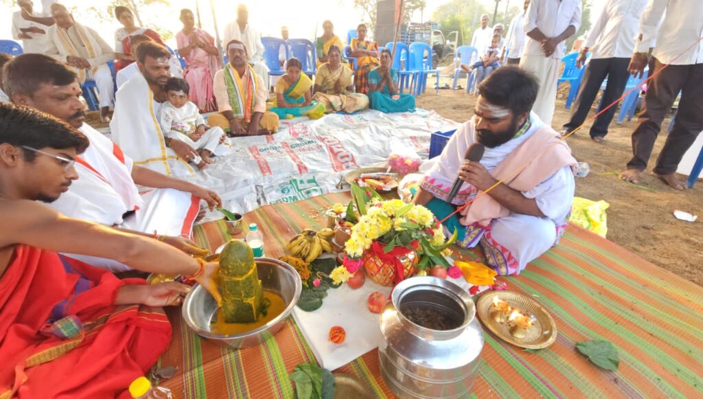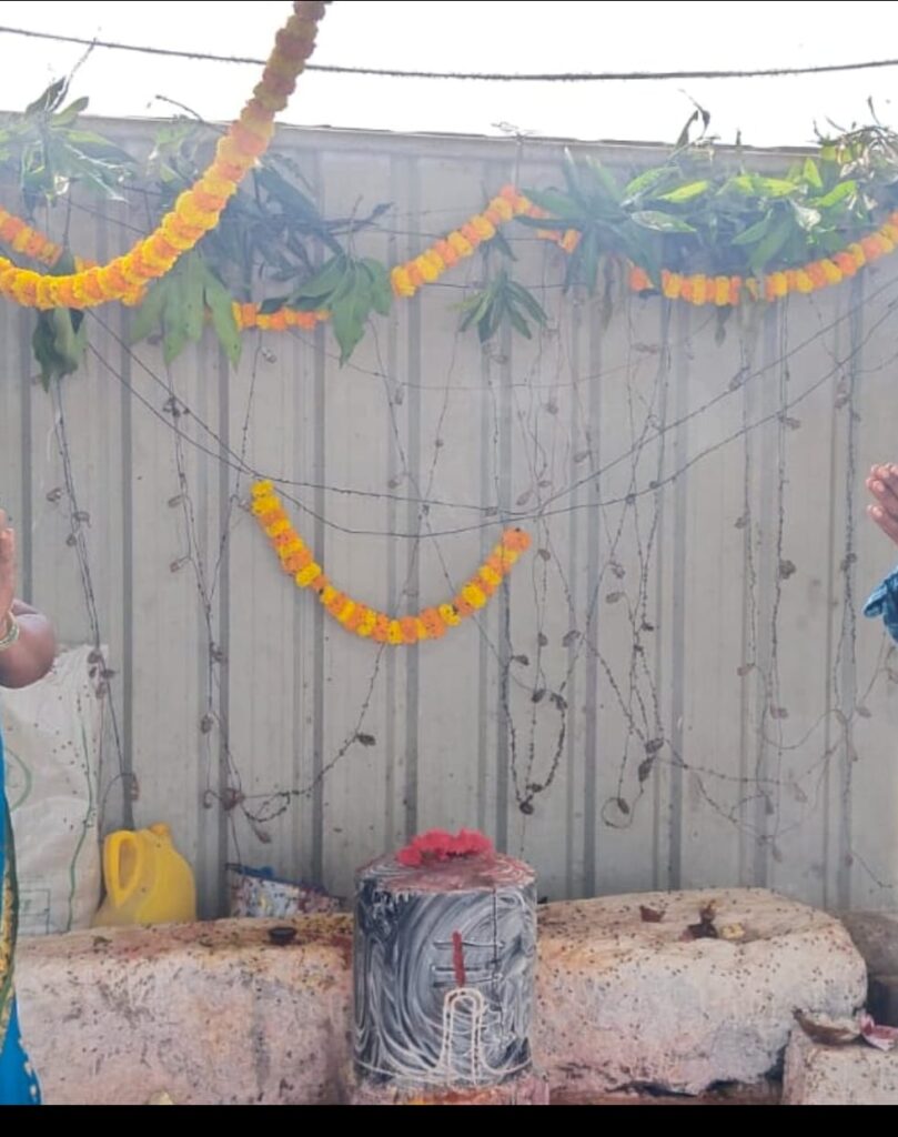 (జై భారత్ వాయిస్ న్యూస్ ఆత్మకూరు) హన్మకొండ జిల్లా ఆత్మకూరు మండలంలోని నీరుకుల్ల శివారులో నెలకొన్న శ్రీ సిద్ధ లింగేశ్వర దేవాలయ నిర్మాణానికి శుక్రవారం గ్రామస్తులు అత్యంత భక్తి శ్రద్ధలతో భూమి పూజ నిర్వహించారు. రెండేళ్ల కింద మహా శివ రాత్రి సందర్భంగా భూమిలో నుంచి వెలువడ్డ సిద్ధ లింగేశ్వరునికి తాత్కాలికంగా షెడ్డు వేసి నీడ కల్పించారు గత రెండు సంవత్సరాల కింద భూమి లోపల నుండి పైకి తేలి గ్రామస్తుల కొందరికి కనబడడంతో వెన్నపురెడ్డి రాజి రెడ్డి ,మాజీ ఎంపీ టి శంకర్ ఆధ్వర్యం లో సిద్ధ లింగేశ్వర ని పైకి తీసి పూజలు నిర్వహించారు అప్పుడు జై భారత్ వాయిస్ వెలుగులోకి తెచ్చింది. అప్పటినుంచి ప్రధాన రహదారి పక్కన తాత్కాలికంగా షెడ్డు వేసి పూజలు నిర్వహిస్తున్నారు గ్రామ పుర ప్రముఖులు మాజీ సొసైటీ చైర్మన్ కడారి రఘునాధ రావు ఆధ్వర్యంలో భూమి పూజ ను చేపట్టారు వేద పురోహితులు కొమ్మనపల్లి సంపత్ కుమార్ ఆధ్వర్యంలో పురోహితులు ఉప్పునూతల బ్రహ్మచారి వడ్డెవరం గోపి వడ్డేవరం బాబు వేదమంత్రోచారణల మధ్య శిలాన్యాసం నిర్వహించారు ఈ శిలాన్యాస కార్యక్రమంలో మాజీ సొసైటీ చైర్మన్ కడారి రఘునాథరావు బొంపెల్లి రాజు ఆలయ కమిటీ చైర్మన్ వెన్నపురెడ్డి రాజిరెడ్డి తాటిపర్తి మోహన్ రావు ,సర్పంచ్ తడక నీరజ శ్రీనివాసు ,తాటిపర్తి కిషన్ రావు మాజీ ఎంపీటీసీ మానగాని శంకర్ ,మాజీ సర్పంచులు ఉడుత సంగీత మహేందర్ ఆర్షం బలరాం దగ్గు సమ్మరావు తాడిపర్తి కిషన్ రావు యువత యువజన సంఘాల సభ్యులు తదితరులు పాల్గొన్నారు.శిలన్యాస సందర్భంగా గ్రామస్తులు సిద్ధలింగేశ్వరునికి ప్రత్యేక పూజలు నిర్వహించారు.