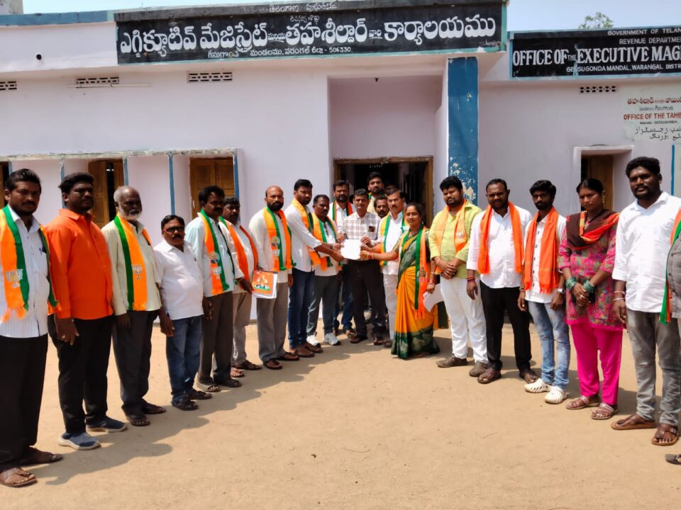 కాంగ్రెస్ ప్రభుత్వం ఆరు గ్యారంటీలను అమలు చేయడంలో విఫలమైనందుకు నిరసిస్తూ గీసుగొండ బీజేపీ మండల అధ్యక్షులు కొంగర రవికుమార్ ఆధ్వర్యంలో తహశీల్దార్ కార్యాలయం సిబ్బందికీబీజేపీ నాయకులు వినతిపత్రం అందజేశారు.ఈ కార్యక్రమానికి ముఖ్య అతిథిగా హాజరైన బీజేపీ ఉమ్మడి వరంగల్ జిల్లా మాజీ అధ్యక్షులు దొంతి దేవేందర్ రెడ్డి మాట్లాడుతూ*, అబద్ధపు హామీలతో అధికారంలోకి వచ్చిన కాంగ్రెస్ ప్రభుత్వం ప్రజలను గాలికి వదిలేసిందని మండిపడ్డారు. రాష్ట్రంలో పాలనపై ప్రజలు తీవ్ర అసంతృప్తితో ఉన్నారని, రైతు భరోసా, పెన్షన్లు, నిరుద్యోగ భృతి, కల్యాణ లక్ష్మి వంటి ఏ ఒక్క హామీ కూడా నెరవేరలేదని విమర్శించారు. పెట్టుబడి సాయం అందక రైతులు అప్పులపాలవుతున్నారని, ఆసరా పెన్షన్ల కోసం అర్హులు కార్యాలయాల చుట్టూ తిరుగుతున్నారని ఆవేదన వ్యక్తం చేస్తూ, వెంటనే ప్రజా సమస్యలు పరిష్కరించకపోతే రాష్ట్రవ్యాప్త ఆందోళనలు చేపడతామని హెచ్చరించారు.ఈ కార్యక్రమంలో జిల్లా ఉపాధ్యక్షులు కూతురు రాజు, రాధారాపు శివకుమార్, జిల్లా కౌన్సిల్ మెంబర్లు బిల్లా రమేష్, గోదాసి అశ్విన్ కుమార్,15,16 డివిజన్ అధ్యక్షులు ల్యాదెళ్ల ప్రభాకర్, జంగిలి ప్రసన్న, రాం ప్రసాద్, జనరల్ సెక్రెటరీలు కందికొండ ప్రదీప్, సంతకాల శ్రీనివాస్,రంజిత్, వెంకటేష్, అల్లం కేదారి, ఉపాధ్యక్షులు మహిళా మోర్చా అధ్యక్షులు బందెల రేణుక సొసైటీ డైరెక్టర్ లే కపల్లి స్వామి శక్తి కేంద్ర ఇంచార్జ్ పిల్లల రవీందర్ గౌడ్ భూత్ అధ్యక్షులు నారెళ్ళ రాములు జల్లా నాగరాజు అన్వేష్ తదితరునాయకులు కార్యకర్తలు పాల్గొన్నారు