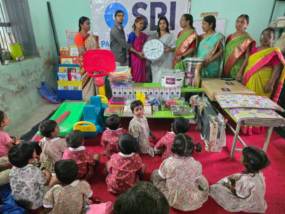 గ్రేటర్ వరంగల్ నగరంలోని 15 డివిజన్ లోని మొగిలిచర్ల అంగన్ వాడి కేంద్రానికి ఎస్ బిఐ బ్యాంక్ ఆధ్వర్యంలో ఉపకరణాలను పంపిణీ చేశారు ఎస్ బీ ఐ బ్యాంకు పాన్ ఇండియా సిఎస్ఆర్ నిధులతో మొగిలిచర్ల లోని అంగన్ వాడి కేంద్రంకి ఆట వస్తువులు ఎల్ఈడి టీవీ రైస్ కుక్కర్ స్టీల్ ప్లేట్లు ఎనుమాముల స్టేట్ బ్యాంక్ మేనేజర్, మిత్ర హోలీ స్టిక్స్ హెల్త్ సొసైటీ చైర్మన్ లక్ష్మీరెడ్డి పిల్లలకు అవసరమైన వస్తు సామాగ్రిని పంపిణీ చేశారు ఈ కార్యక్రమంలో వర్ధన్నపేట సిడిపిఓ డిబోరా ధర్మారం సెక్టార్ అంగన్వాడి సూపర్వైజర్ మాధవి తెలంగాణ అంగన్వాడి టీచర్స్ అండ్ హెల్పర్స్ అసోసియేషన్ వరంగల్ జిల్లా అధ్యక్షురాలు అనిత కుమారి అంగన్ వాడి. హెల్పర్స్ పేరెంట్స్ తదితరులు పాల్గొన్నారు